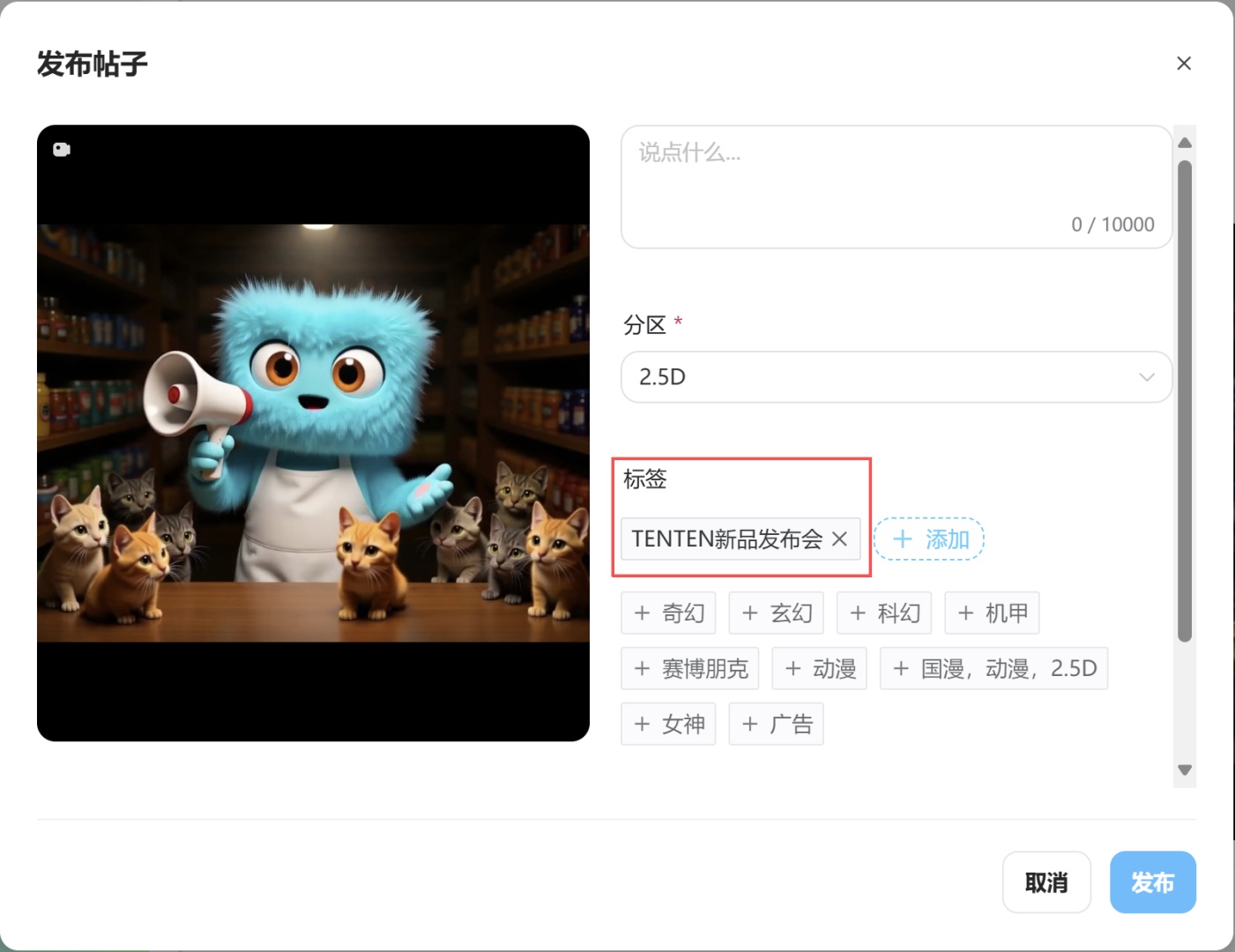 视频做好后,不要忘了带上tag #TENTEN新品发布会 发布帖子到吐司平台,丰厚大奖等你来拿!