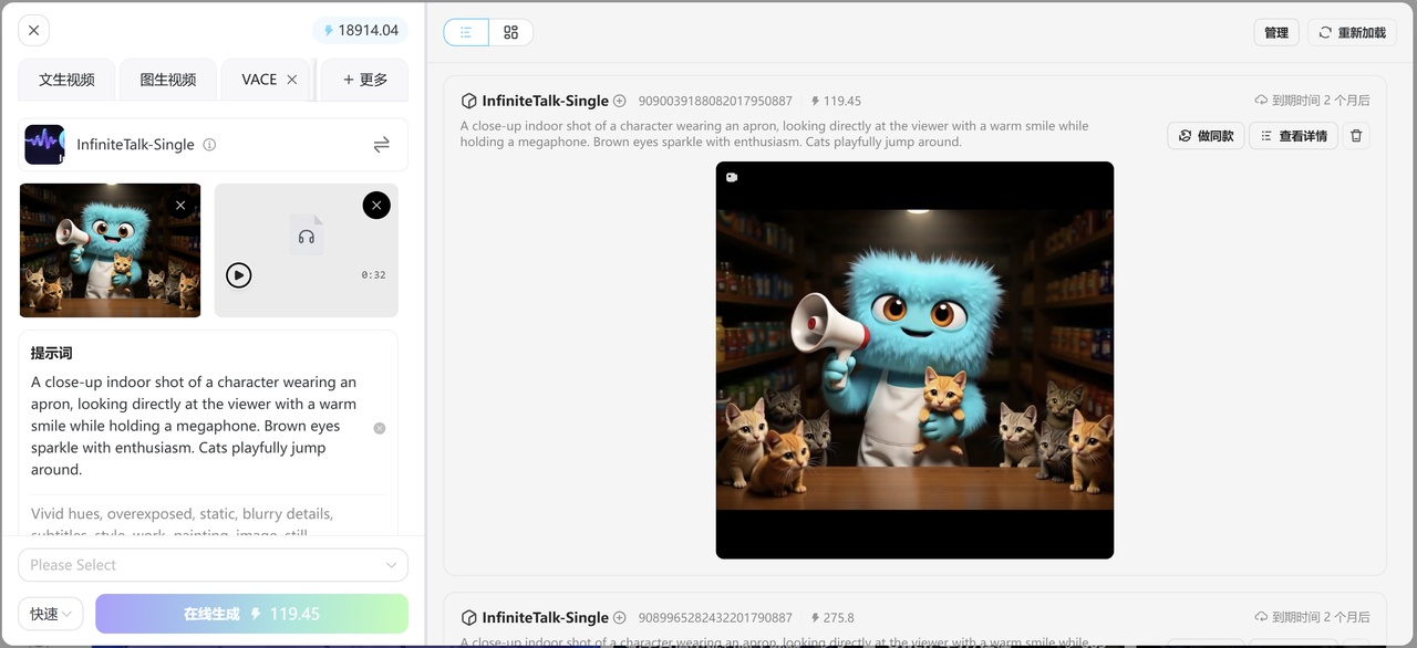 大家好!最近InfiniteTalk-Single模型上线吐司了,不知道各位有没有体验一下呢?