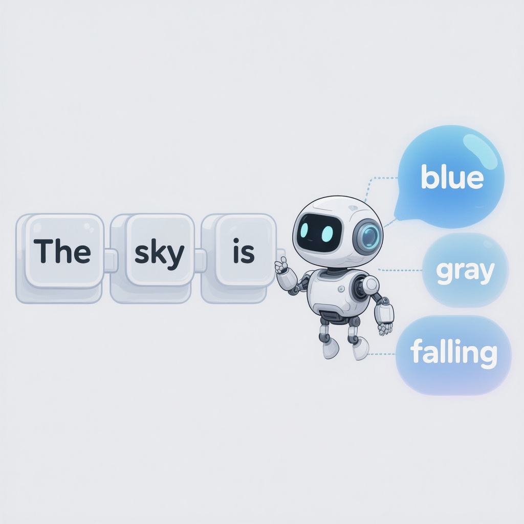 提示词:创造一副通俗易懂的插画介绍LLM的next token prediction的原理