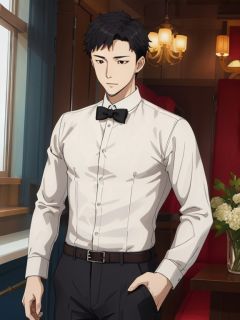 1male,tianqi,white shirt, black pants,upper body,masterpiece, best quality, <lora:tianqi:1>