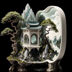 masterpiece,best quality, no humans,miniature,bonsai,(mountains:1.3),(landscape:0.6) painting,Ancient pavilion,banyan tree,(waters:0.7),white background,smoke,<lora:ShanShuiHua-000010:1> <lora:Smoke:0.6>