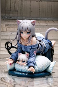 1girl,off-shoulder sweater,simple background,full body,first-person view,handmade style,Grey hair,top-down_bottom-up,doggystyle,nacho,cat girl,tail,blue_eyes
