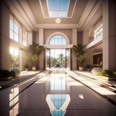 (masterpiece),(high quality), best quality, real,(realistic), super detailed, (full detail),(4k),8k,no humans, scenery, window, reflective floor, plant, sunlight, indoors, day, reflection, door, sky, watermark, potted plant, blue sky, wooden floor <lora:XSArchi_116:1>