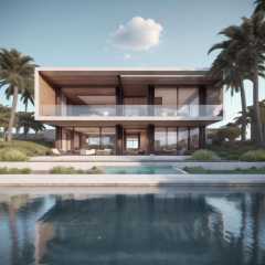 (masterpiece),(high quality), best quality, real,(realistic), super detailed, (full detail),(4k),8k,no humans, tree, scenery, rock, outdoors, grass, water, building, palm tree, plant, sky, window, bush, house, cloud, reflection, day<lora:XSArchi_109PoolHouse泳池独栋正视角:1>