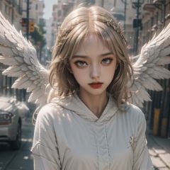 Exquisite skin details,,1girl,upper_body,angel,wings,blonde hair