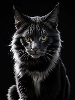 AP,no humans,animal focus,cat,black background,looking at viewer,simple background,animal,whiskers,maine coon,