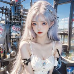 masterpiece,best quality,ultra-detailed,very detailed illustrations,extremely detailed,half-mach,intricate details,highres,super complex details,extremely detailed 8k cg wallpaper,cowboy shot, caustics,reflection,ray tracing,demontheme,nebula,dark aura,cyber effect, (1girl:1.4),solo,alone,mecha musume,mechanical parts, robot joints,single mechanical arm, headgear, mechanical halo,star halo,intricate mechanical bodysuit, mecha corset, full armor, very long hair,white hair, hair between eyes, multicolored hair, colored inner hair, glowing eye,eye trail, random expressions,random action, pond, starry sky,skyline,11,1girl,FUJI,FilmGirl