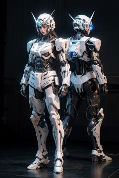 1girl,solo,full body,Gundam,blue_eyes,standing,no_humans,glowing,robot,mecha,clenched_hands,science_fiction,v-fin,mobile_suit,cinematic lighting,strong contrast,high level of detail,Best quality,masterpiece,White background,<lora:gundam_Transparent:0.4>,