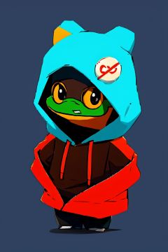 style of Justin Maller, a frogy, hoody on, warm colors, simple  background, Illustration, japan, minimalistic, cutestickers