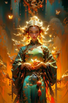 masterpiece,1girl, best quality, 90s dark fantasy movie still,(muted colors, dim colors, soothing tones:1.3),yellow theme,wuxia,taoist,Real,butterfly,bj_elegant,shiguang,nijiring,Chinese art,heart-shaped_pupils,Update
