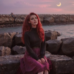 aw0k euphoric style, photograph, beautiful woman, Sitting with elbows on knees, dark black and Fuchsia Raging hair, at Overcast, soft focus, Sketched, Beautifully Lit, film grain, Kodak gold 200, Zoom lens, One Color, art by Arnold Schoenberg, <lora:katu:1> <lora:vhsart:1>
