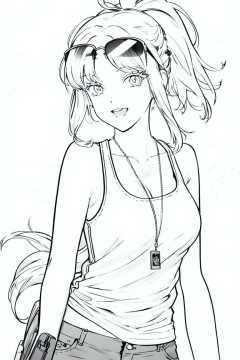 monochrome,lineart,origin, 1girl, solo, breasts, sunglasses, dog tags, **** top, open mouth, looking at viewer, armpits, clothes around waist, smile, gradient background, collarbone, cleavage, gradient <lora:char-angelia-000012:1> <lora:画风-线稿animeLineartStyle_v10Offset[monochrome,lineart]:1>