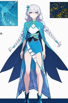(masterpiece:1.3), (the best quality:1.2), (super fine illustrations:1.2), (Masterpiece), high quality, high detail,((white background:1.2)), looking at viewer, (SOLO:1.4),outline,,simple background,qua, blue footwear, blue cape, high heels, bangs, hair ornament, jewelry, hair between eyes, earrings,chinese clothes,blue dress,thighhighs, white cuish, blue eyes, long white hair, twin braids