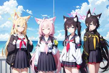 (masterpiece:1.2),best quality,PIXIV,blue archive,multiple girls,halo,animal ears,4girls,gloves,school uniform,armband,long hair,red eyes,fox ears,pink hair,skirt,blue eyes,sailor collar,serafuku,green eyes,blonde hair,looking at viewer,black gloves,ahoge,brown hair,twintails,black hair,long sleeves,white serafuku,shiroko (blue archive),red neckerchief,very long hair,pleated skirt,hoshino (blue archive),black sailor collar,bangs,hair ornament,closed eyes,neckerchief,animal ear fluff,headset,<lora:blue archive-000018:0.8>,