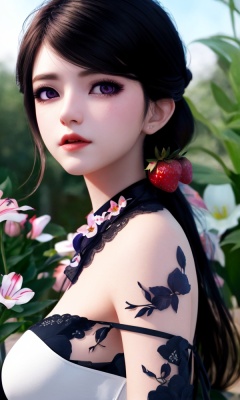 (,1girl, ,best quality, )<lora:365-DA-梦塔·雪谜城-艾妙妙:0.6>,ultra detailed background,ultra detailed background,ultra realistic 8k cg, , ,masterpiece, (( , )),, ultra realistic 8k cg, ,tamari \(flawless\),     ,lily \(flower\) ,full moon ,strawberry blossoms      (()), (),