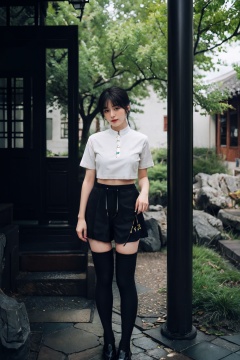 ((masterpiece)),((best quality)),(phot-relistic:1.4),8k,RAW photo,absurdreshyperdetailed,realistic,bokeh,depth of field,(Foreground blur:1.3),Deep Shadow,negative space,Minimalism,film grain,horror photography,vintage tone,high contrast,(dark blue theme:1.1),professional photography photos,emptiness,1girl,elegant,(sad:1.2),lazy,gloom,huge breasts,looking at viewer,(black thighhighs:1.6),foreshortening,<lora:yuanlin_muggle:0.6>,yuanlin muggle,