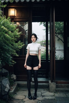 ((masterpiece)),((best quality)),(phot-relistic:1.4),8k,RAW photo,absurdreshyperdetailed,realistic,bokeh,depth of field,(Foreground blur:1.3),Deep Shadow,negative space,Minimalism,film grain,horror photography,vintage tone,high contrast,(dark blue theme:1.1),professional photography photos,emptiness,1girl,elegant,(sad:1.2),lazy,gloom,huge breasts,looking at viewer,(black thighhighs:1.6),from_above,<lora:yuanlin_muggle:0.6>,yuanlin muggle,
