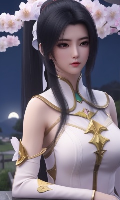 (,1girl, ,best quality, ),looking at viewer, <lora:401-DA-大主宰-叶轻灵:0.8> ,, ,masterpiece,(( , )),, realistic,science fiction,mole,,ultra realistic 8k cg, flawless,tamari \(flawless\),  ,cherry blossoms,,night, night sky, crescent moon, moonlight,,(facing viewer, looking at viewer, , ),  (()), (),