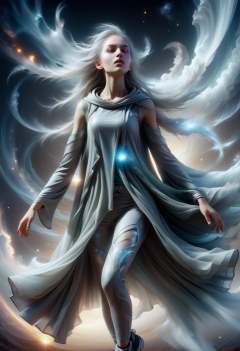 hyper detailed masterpiece, dynamic realistic digital art, awesome quality, DonMB4nsh33XL otherworldly nebulous pale girl, taupe quantum-tech leggings,  virtual reality tunic dress, solar-powered slides,  , dissolving into mist, screaming in agony <lora:DonMB4nsh33XL-v1.1-000004:0.8>
