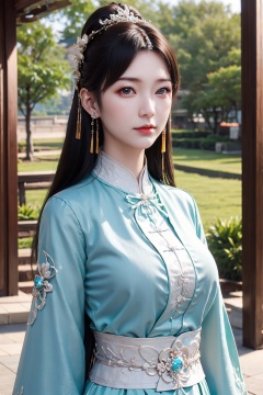 CAFC,1girl,solo,long hair,earrings,jewelry,hair accessories,upper body,suburban scenery,east asian,chinese style architecture,<lora:NSFWFilter:-1.5>,
