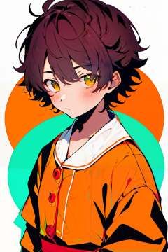 niji color,1girl, upper body, looking at viewer, quiff,orange,halter,cocktail dress,