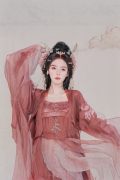 best quality,masterpiece,realistic,simple background,hanfu,hair ornament,chinese clothes,1girl,solo,black hair,long hair,plant,mountain,cloud,(flower:1.3),(cowboy shot:1.2),upper body,wind,(floating hair:1.3),(faux traditional media:1.3),<lora:水光肌1.0_v1-000018:0.5>,<lora:画中仙1.0_v4:0.8>,<lora:少女日记1.0_v4-000016:0.6>,dynamic pose,<lora:NO5_V1-000014:0.5>,(dancing:1.3),
