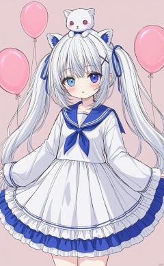 masterpiece,best quality,very long hair,cowboy shot,moinsun,moinsun,moinsun,moinsun,moinsun,moinsun,moinsun,moinsun,moinsun,moinsun,moinsun,moinsun,moinsun,moinsun,moinsun,1girl,dress,sailor_dress,heterochromia,white_sailor_collar,long_sleeves,solo,blue_eyes,sailor_collar,white_dress,long_hair,bangs,frills,parted_lips,twintails,white_hair,hair_ornament,looking_at_viewer,very_long_hair,blush,neckerchief,balloon,frilled_dress,blue_ribbon,sleeves_past_wrists,x_hair_ornament,on_head,animal,ribbon,frilled_sailor_collar,blue_neckerchief,animal_on_head,