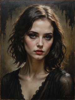 In Casey Baugh's evocative style, a Gothic girl emerges from the depths of darkness, her essence a captivating blend of mystery and allure. With piercing eyes and flowing ebony hair, she exudes an enigmatic presence that draws viewers into her world. Baugh's brushwork infuses the painting with a unique combination of realism and abstraction, highlighting the girl's delicate features and contrasting them against a backdrop of deep, rich hues. The interplay of light and shadow adds depth and dimension to the artwork, creating a hauntingly beautiful portrayal of this Gothic muse. Baugh's distinctive style captures the essence of the girl's enigmatic nature, inviting viewers to explore the depths of her soul. Signature