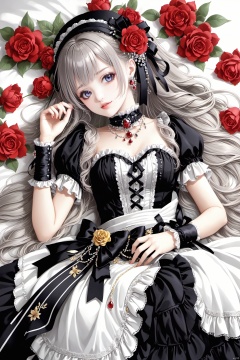 1girl,flowers, jewerly,laying_down,ASF, NVZ,lolita_fashion,syd,