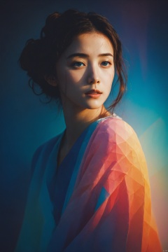 head and shoulders, flat color BREAK (vaporwave:1.2), a statuesque Picaroto woman with prisms in her eyes, geometric gradients background BREAK colorful, dream-like, illustration, gradient surreal fantasy, by Victo Ngai Makoto Shinkai, Light master<lora:EMS-317795-EMS:0.800000>