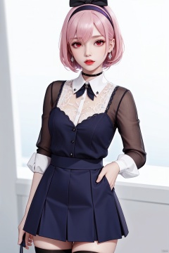 Realistic style, cinematic work, 8K wallpaper, masterpiece, very realistic quality, best quality, masterpiece, high-level, high-resolution,,,Edge lighting, dual tone lighting, soft lighting, The illuminated surface of the material has bright spots and highlights, which flicker and have a mirror effect when reflected, There are sparkling spots on the armor,,,1 girl, mature female, solo, full body, looking at viewer, lace, strong rim light, Standard proportion of female body, golden proportion of female body,,,Standing, standing posture, Sexy full body standing posture,,,,(aierwen1, 1girl, red eyes, pink hair, medium hair, purple hair, short hair, bangs, hair between eyes, hairband, hair bow, ahoge,, thighhighs, skirt, shoes, white thighhighs, shirt, long sleeves, blue skirt, white shirt, see-through, choker, ribbon, bow, small breasts, breasts, blue footwear,:1.2),,,colorful,(detailed skin: 1.3), (detailed face: 1.3),clear focus,delicate,(mature women: 1.2),(glossy skin+glossy skin: 1.4),(sweating: 1.1),(big_eyes),red_ eyeshadow,long_ Eyelashes, red lips,,,simple background, grey background,,,(Diamond hair accessories, diamond necklaces, diamond earrings, diamond earrings, clothes embedded with diamonds, armor embedded with diamonds,:1.3),, , aerhangeersike, daiduo, chuyun, aerfuleiduo, genaisennao1,genaisennao2, aheye, aierwen<lora:EMS-318966-EMS:0.350000>