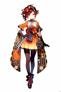 score_9,score_8_up,score_7_up,best quality,masterpiece,source_anime,\\\\\\\\\\\\8k,best quality,masterpiece,(ultra-detailed:1.1),(high detailed skin),symmetrical,(full body:1.4),white background,standing,looking at viewer,(solo),hand on hip,,qianzhi, 1girl, gloves, black gloves, hair ornament, japanese clothes, pantyhose, kimono, red eyes, flower, black footwear, multicolored hair,,(white background, simple background:1.6),(beautiful_face),((intricate_detail)),clear face,((finely_detailed)),fine_fabric_emphasis,((glossy)),full_shot,