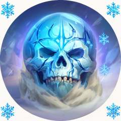 skill icon, a blue and white skull with snowflakes around it and a blue circle with snowflakes around it, solo, no humans, skull, blue background, ice, snowflakes, round image, Blue series,<lora:gmic icon_skill icon:1>,