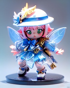 gdsj,(Full body photo),1 Transparent cute fairy,(Exquisite hat:1.2),Fantasy glow,clean,white background,(Raytracing, HDR, Reasonable design, High detail, Masterpiece, Best quality, Ultra HD),light blueuniform,, ( figma:0.8)