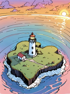 <lora:luXL毛躁手绘Fuzzylines_lora_resized:0.6>, fuzzylines, sketch, view of a lovely isolated heart_shaped island surrounded by sea, under the sunset lighting, lighthouse on the island, top view,