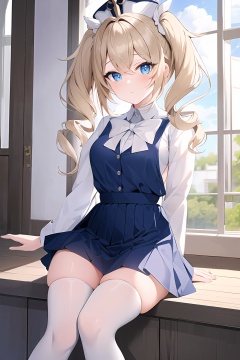 (masterpiece, best quality:1.2),insanely detailed,absurdres,ultra-highres,ultra-detailed,best quality,slender,kawaii,perfect symmetrical face,ultra cute girl,ultra cute face,ultra detailed eyes,ultra cute,ultra beautifu,<lora:barbara-000001:0.5>,barbara \(genshin impact\),1girl,solo,blue eyes,twintailshat,twin drills,school uniform,white thighhighs,outdoors,standing,