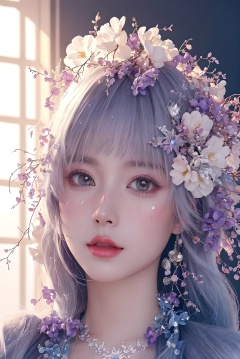 <lora:Fashion_Girl:0.66>purple  theme,  snowflakes,  looking at viewer,  portrait,  colorful hair,  jewelry,  close up,  ultra high res,  deep shadow, (best quality,  masterpiece),  dimly lit,  shade, highly detailed,  bold makeup,  flower,  simple background,  depth of field,  film grain,  fashion_girl,  accessories, High detailed, (masterpiece,high quality,best quality),(colorful),(delicate eyes and face),volumatic light,ray tracing,extremely detailed CG unity 8k wallpaper,solo, indoors, palace, lights, window, decorations,(ahoge:1.3),best quality,official art,(((light from the sky))),floating hair,light shines on hair,whultra-detailed,(((extremely detailed cg 8k wallpaper))),(crystalstexture skin:1.4),(extremely delicate and beautiful),(white skin),looking_at_viewer,kinghere fensejiaren,,realistic,