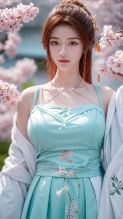 masterpiece,(best quality),upper_body,,exploring cherry blossom branches,wonderland,light blue element, sly,Xsulingyun,(big breasts:1.29), traditional chinese ink painting