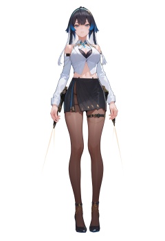 ASCII score_9, score_8_up, score_7_up, score_anime, 8k, best quality, masterpiece, (ultra-detailed), white background, full body, standing, looking at viewer, <lora:Katya-pony-Tanger:0.8>, Katya, 3rd clothes, mishu, 1girl, pantyhose, skirt, breasts, black hair, multicolored hair, black skirt, long hair, high heels, black panties,