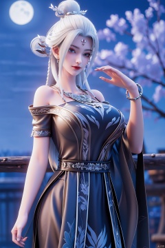 (Masterpiece:1.2), best quality,1girl, looking_at_viewer,(big breasts:1.69),Xyaoye,Large aperture, blurred background, spring scene,flowers,Xsimiaoling,full moon,,,Xtianhuxiaobai
