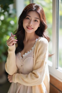 (Early autumn date), ((pastel cardigan)), ((Summer dress with fine lace and frills)),