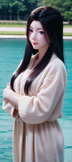 1girl, solo, bathrobe, In the lake, take a bath, bath towel, looking at viewer, masterpiece, best quality