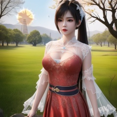 <lora:799-DA-神墓-楚钰:0.8>, (,1girl, ,best quality, ),,  ,, ultra realistic 8k cg,,masterpiece, (( , )), fiction,mole,  ,     ,see-through, lace, (cleavage),, (((, solo, sun, , bare_tree, )))
