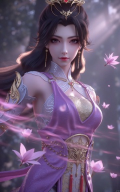 masterpiece,1girl,long hair,(flower:1.5),full_body,hair ornament,chinese clothes,(light purple dress:1.39),black eyes,long sleeves,holding,holding flower,,hanfu dress,,looking at viewer,(huge breasts:1.99),Xzhaoliner