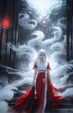 (dramatic, gritty, intense:1.4),masterpiece, best quality, 32K,insane details, intricate details, hyperdetailed, hyper quality, high detail, ultra detailed, Masterpiece, (full body:1.3), Red eyes,(white hair:1.6),an girl in a red dress is in front of white eyes, Unreal background, smoke and mist, like something coming out. Chinese Taoist ghost legend,horror-inspired, Chinese Horror,dollcore, dark violet and light blue, contrast between light and dark,photo-realistic hyperbole, japonism influenced pieces, cryptidcore,Junji Ito, miho hirano, ilya kuvshinov, Yimou Zhang, Thick paintings, oil paintings, ink drawings,cinematic textures, top view, extreme close-ups, REALISTIC 3D, ULTRA DETAILED. Blender, C4D, high detail, high resolution,A shot with tension,(sky glows red,Visual impact,giving the poster a dynamic and visually striking appearance:1.2),Chinese Zen style,impactful picture,<lora:绪儿-红衣女鬼:0.8>