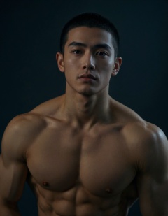 a muscular man with short buzz cut,large shoulder,soft lighting,high resolution,professional grade,RAW photography,evocative composition,Cinematic Lighting,moody lighting,perfect eyes,depth of field,virtual background,eyes focus,<lora:majichandsome2:0.8>,