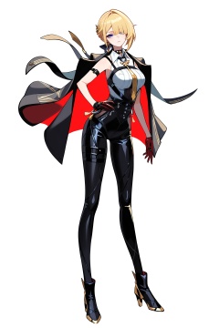 score_9,score_8_up,score_7_up,score_anime,8k,best quality,masterpiece,(ultra-detailed),(high detailed skin),(by nanoless, by misumi \(macaroni\),:0.5),<lora:YLI 0.1v:0.25>,<lora:style1:0.25>,A full-body portrait of a young girl,standing gracefully,pastel art style,high-key lighting,shoujo manga influence,hd quality,delicate details,full body,full shot,standing,looking at viewer,(solo:1.2),simple background,white background,hand on own hip,<lora:Evelyn-pony-Tanger-000019:0.8>,Evelyn \(zenless zone zero\),clothes: def Evelyn clothes,Evelyn jacket,1girl,gloves,blonde hair,necktie,short hair,black pants,black footwear,
