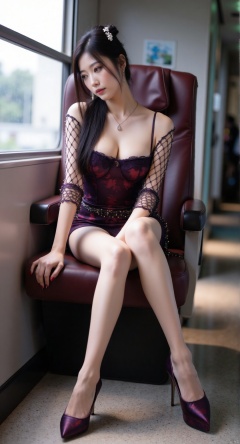 A Chinese train female flight attendant , vision. The female train attendant wore fashionable and sexy high heels, long hair and air bangs, which had a youthful atmosphere. In this galloping train, the female flight attendant used her sexy legs to seduce the boy on the train. She sat on the ground and exposed her sexy plump and fleshy long legs, conquering the man and riding under her crotch. Wonderful plot interpretation, tempting expression full of passion,spread legs