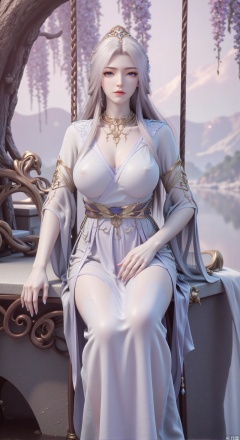 SFW,(masterpiece, top quality, best quality, official art, beautiful and aesthetic:1.2),Dynamic posture,(Sitting on the swing:1.39),natural skin texture,(Milky skin:1.2),1gir,solo,long Dress,