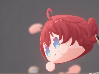 masterpiece,best quality,newest,absurdres,highres,very awa,1girl, danjin, danjin\(wuthering waves\), red hair, chibi, braid buns, blue eyes, simple_background,smile,tuanzi\(wuthering waves\),